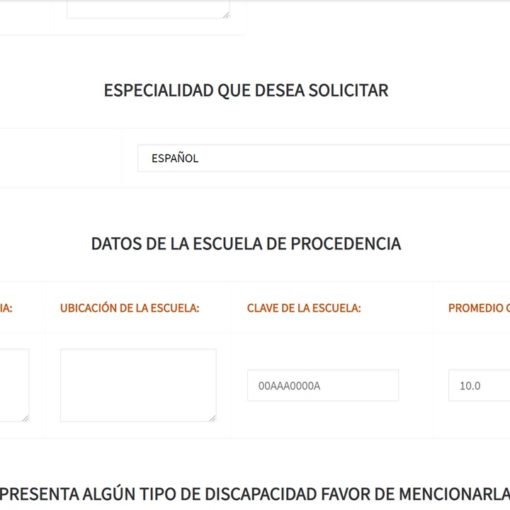 - Ventanas de captura para la alimentación de la malla curricular y las diferentes especialidades
